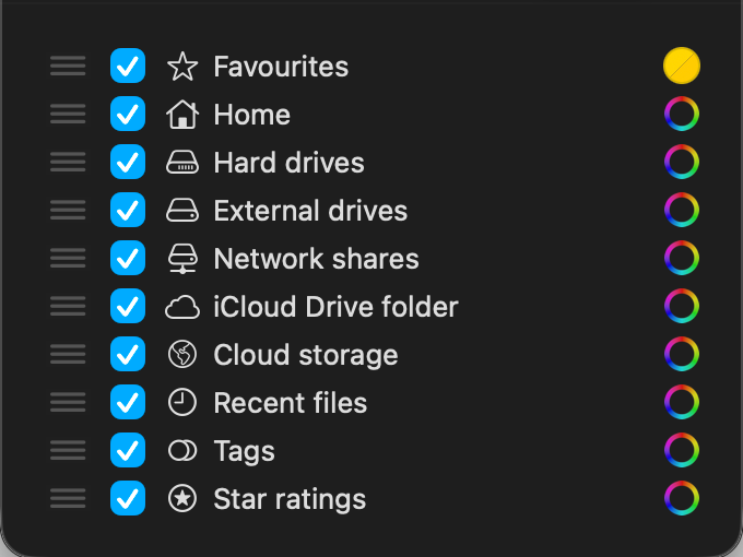 → Rearrange and change the color of the top-level nodes or of all folders in the tree belonging to a specific category